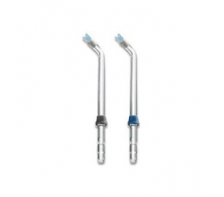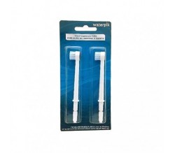 La boquilla con cepillo está formada por un cabezal fijo que permite que el agua inyectada por pulsaciones a través de los filamentos limpie y enjuague la superficie del diente. Diseñada para poder cepillar los dientes e inyectar un chorro de agua al mismo tiempo.