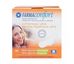Compresas 100 % Algodón Farmaconfort Ultra Día son unas compresas ultrafinas con alas que reducen los picores en tu zona íntima durante tu menstruación.
