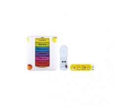 Pastillero de 7 compartimientos con un cortador de comprimidos